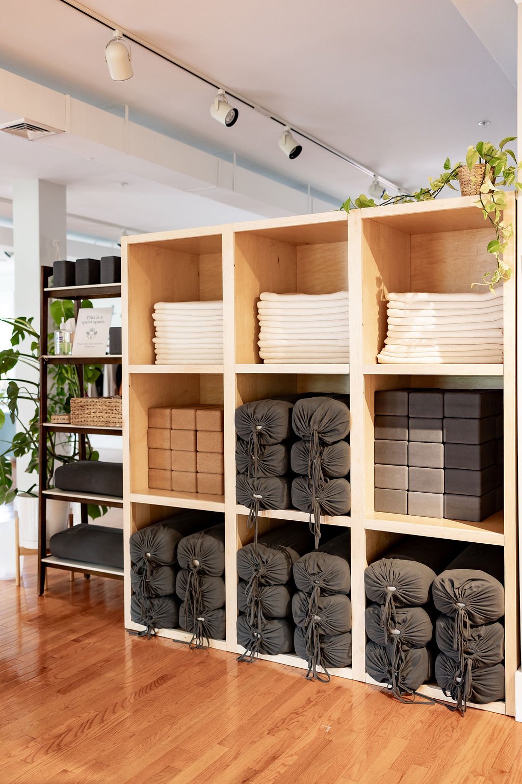 Please bring your own yoga mat to the studio. Manduka eKO Lite mats are available to rent for $2 cash per visit. Props (blocks, blankets, bolsters and straps) are available to borrow from the studio free of charge. Students are responsible for putting props back on the shelf as neatly as possible.